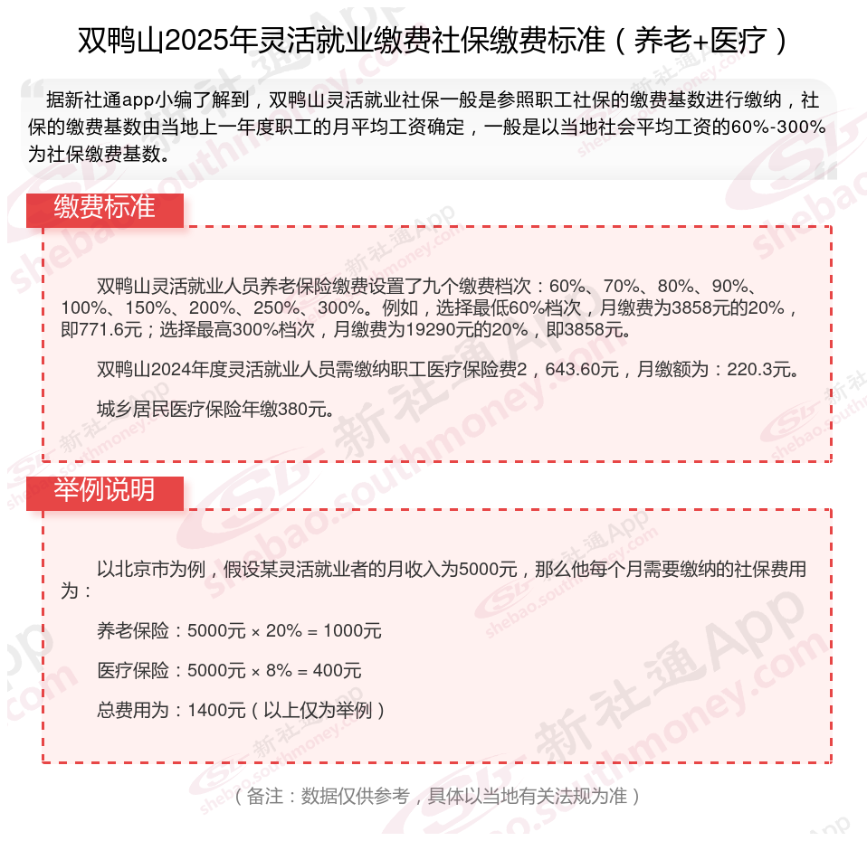 双鸭山灵活就业社保每月交多少钱?灵活就业社保养老/医保缴费标准(基数+比例)最新消息