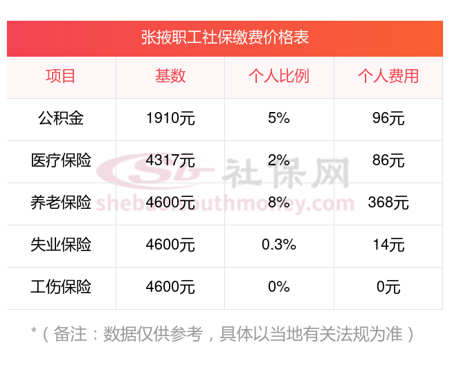 社保缴费价格表来了