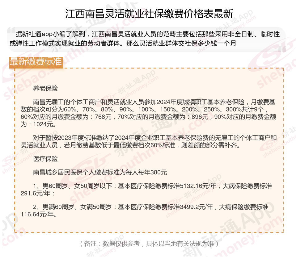 江西南昌灵活就业社保每月交多少钱?灵活就业人员2024-2025年养老社保缴费基数是多少?