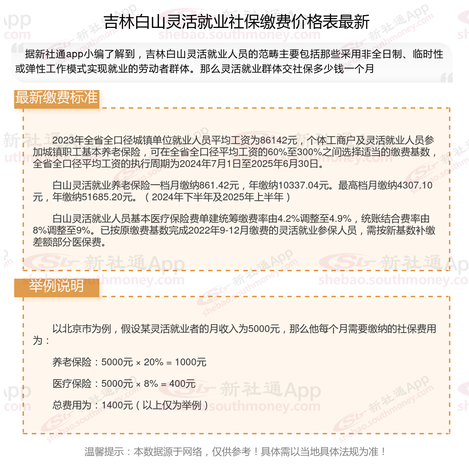 吉林白山灵活就业人员基本养老保险缴费基数暂按不低于4307.1元;
