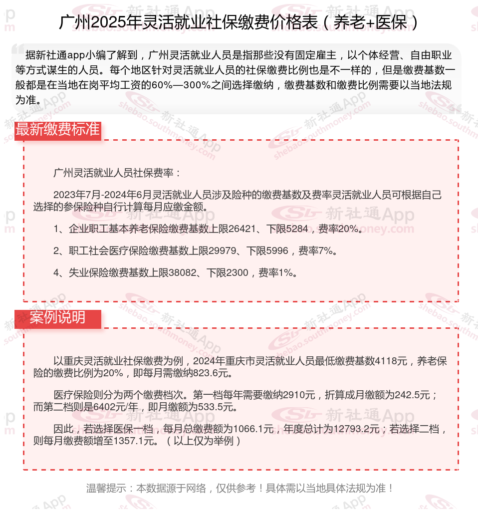 一、2024年广州灵活就业社保缴费标准表 广州灵活就业社保多少钱一个月?