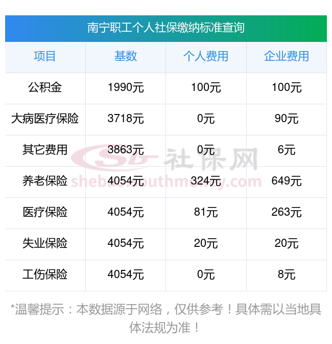 二、2025年南宁职工和公司社保各交多少钱?职工社保缴费多少钱一个月?