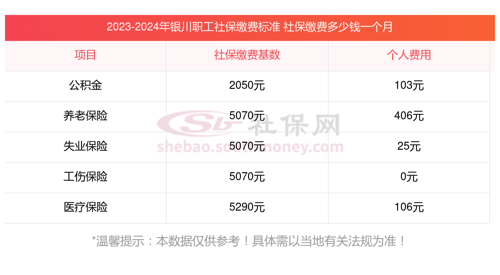 据新社通app显示,银川社保缴费基数2023-2024年标准,(社保最低一个月要交多少钱)银川社保费用如下: