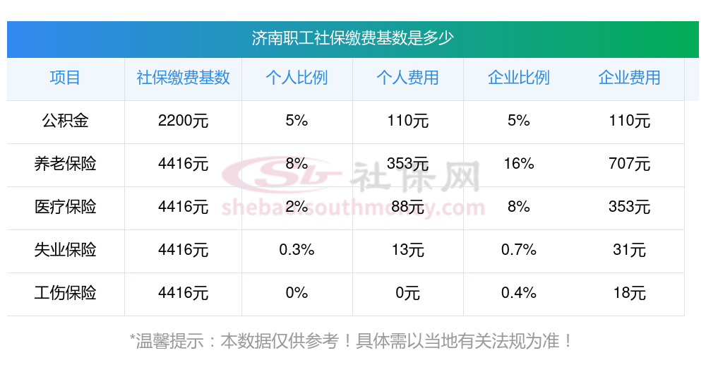 【社保攻略】明明白白交社保!社保缴纳费用是根据个人的缴费基数和缴费比例来计算的。济南社保养老保险基数为:4416.00。那么一个月需要缴纳多少钱?跟着新社通小编一起来了解一下2025年济南社保缴费详情。