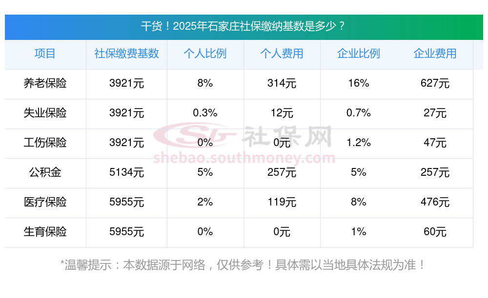 据新社通app显示,石家庄社保缴费基数2025标准,(社保最低一个月要交多少钱)石家庄社保费用如下: