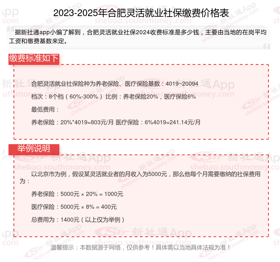 灵活就业社保是指针对灵活就业人员的社会保险制。灵活就业人员包括个体经营者、自由职业者、临时工等,他们没有固定的雇主,因此需要自行缴纳社会保险。那么2025年合肥灵活就业人员社保需要交多少钱?下面随新社通小编一起来看看。