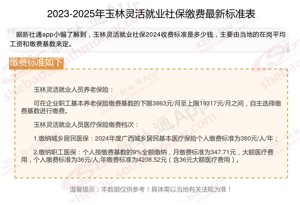 灵活就业者缴纳社保比例是多少?一般需要交多少钱一个月?根据新社通app-社保缴费查询工具提供的2025社保缴费标准详情数据: