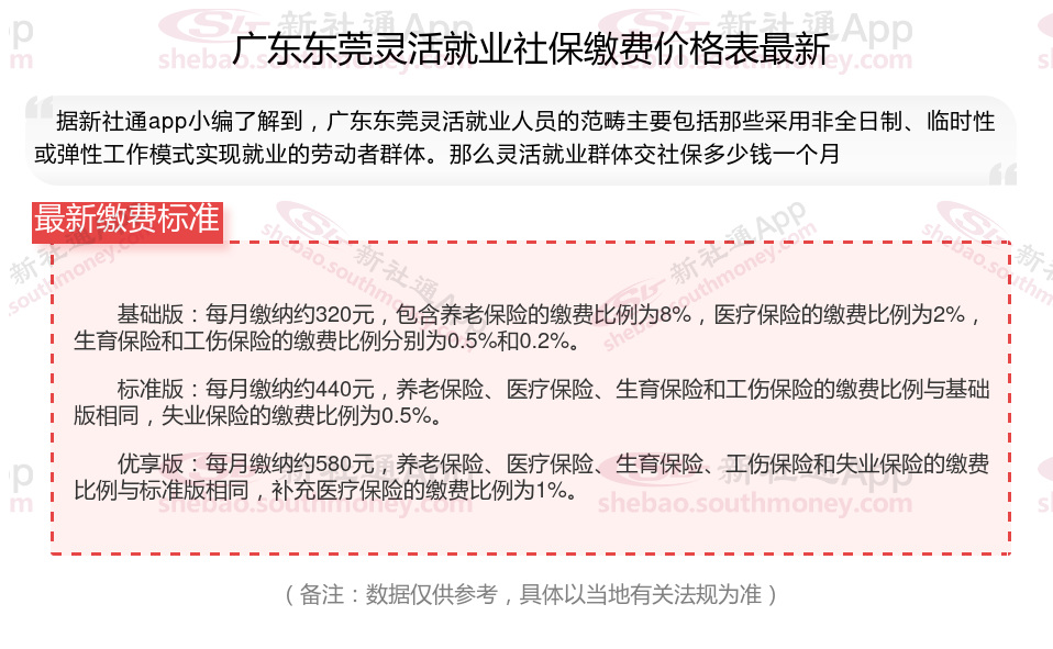 据新社通app数据显示,广东东莞灵活就业养老保险缴费基数2024-2025年最新标准如下: