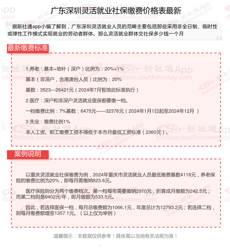灵活就业社保缴费法规继续完善,涵盖了养老保险、医疗保险、失业保险等多个方面,旨在为灵活就业人员提供全面的社会保证。接下来随社保君了解一下2025年广东深圳灵活就业人员社保交多少钱的详细内容。