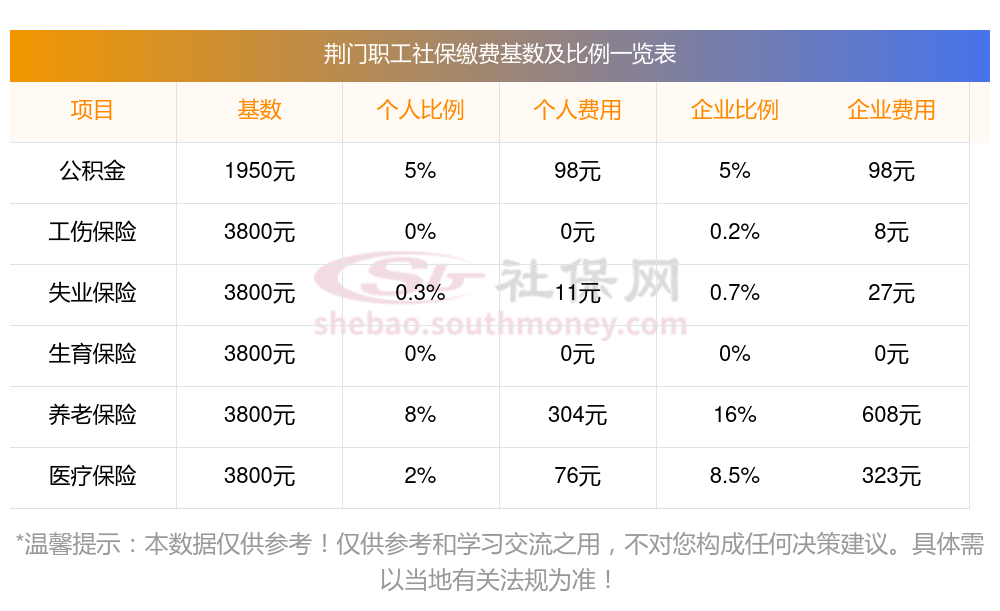 据新社通app获悉:荆门企业职工社保缴费基数为:3579.00元,荆门社保要多少钱?2025年个人社保缴费标准表(最低标准)?: