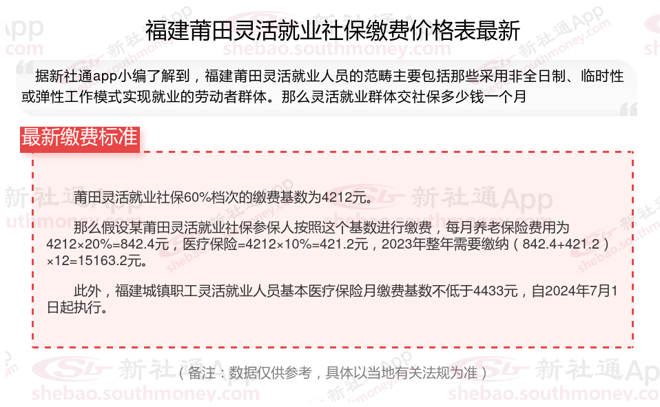 以上就是带来福建莆田灵活就业社保缴费标准相关知识,内容及数据仅供参考,希望对你有帮助,欢迎关注/下载新社通app解锁更多社保专业资讯。