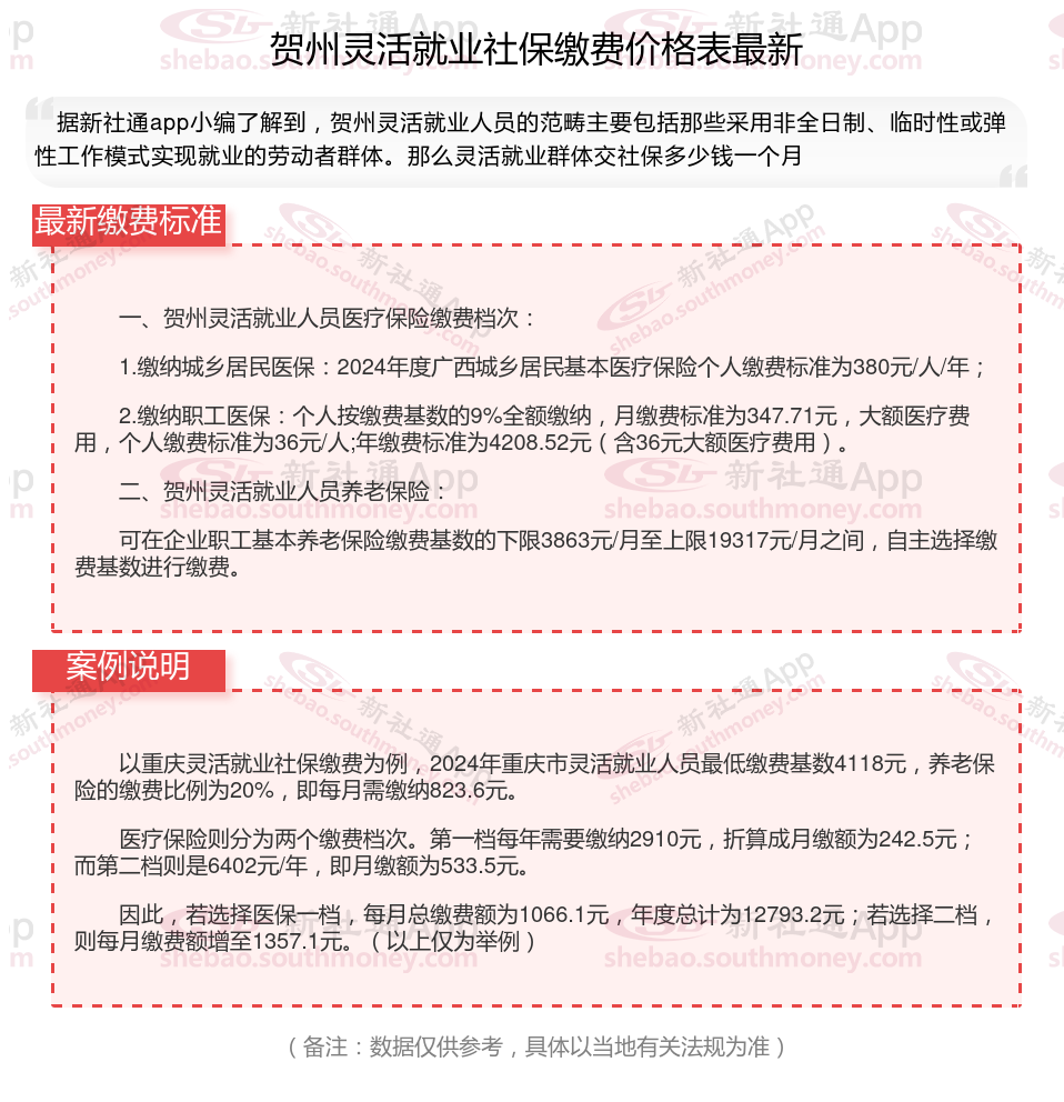 二、贺州2024年灵活就业社保缴费基数、比例最新消息