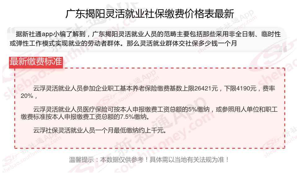 一、2025年广东揭阳灵活就业社保缴费标准表 2025年广东揭阳灵活就业社保多少钱一个月?