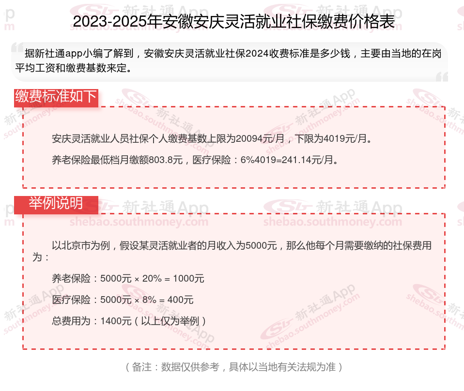 二、安徽安庆2024年灵活就业社保缴费基数、比例最新消息