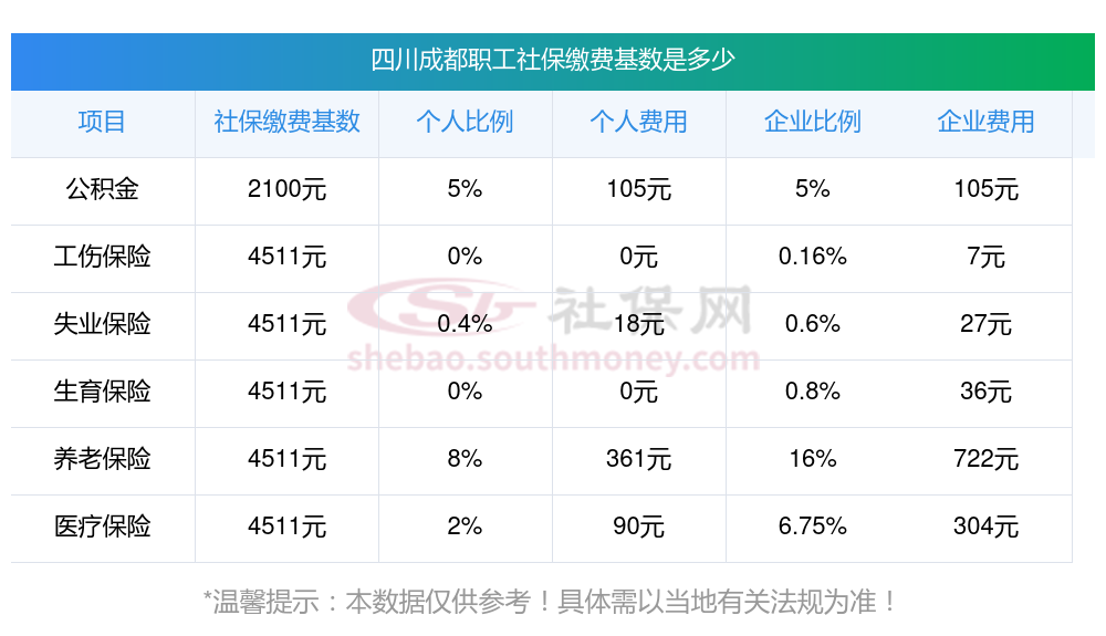 目前该四川成都社保缴费基数最新参考为3579.00。(数据仅供参考)