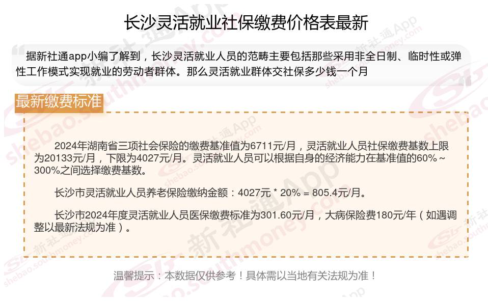提示:长沙灵活就业人员每个月的缴费压力还是比较大的,每个月的社保费用都是千元,缴费档次越高,灵活就业人员要缴纳的费用也越多。