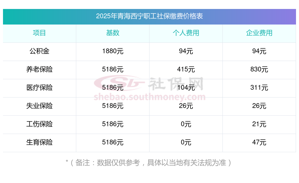 2025年以个人身份参加职工青海西宁社保的缴费标准是多少?据新社通app获悉:青海西宁企业职工社保缴费基数为:3579.00元。