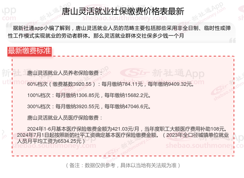 一、2024年唐山灵活就业社保缴费标准表 唐山灵活就业社保多少钱一个月?