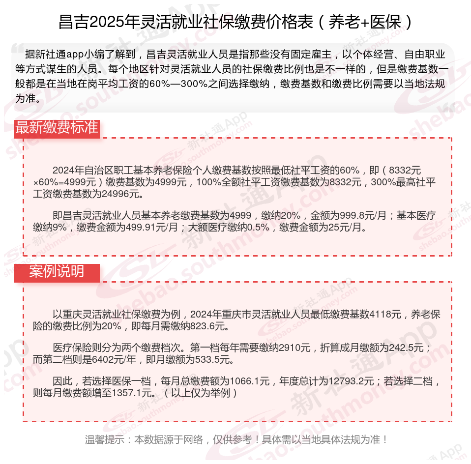 二、昌吉2024年灵活就业社保缴费基数及比例