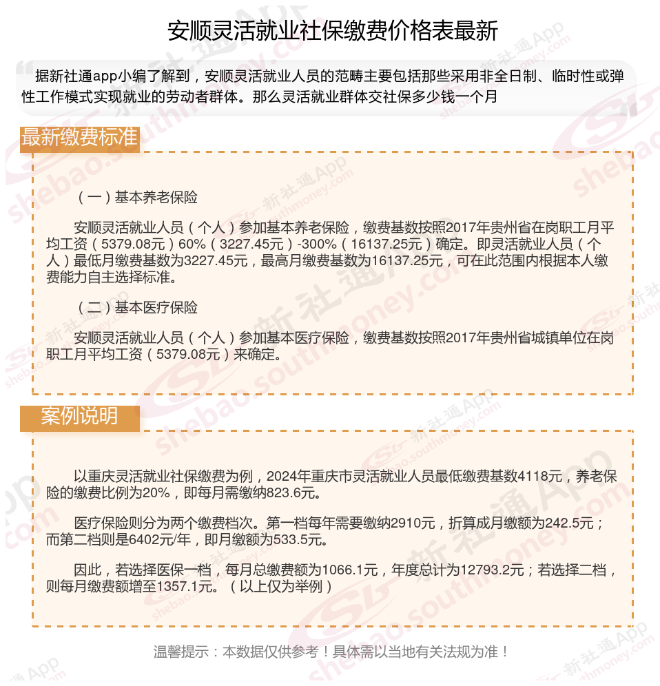 一、2024年安顺灵活就业社保缴费标准表 安顺灵活就业社保多少钱一个月?