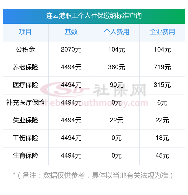一、连云港职工社保缴费基数是多少钱一个月?职工社保缴纳标准