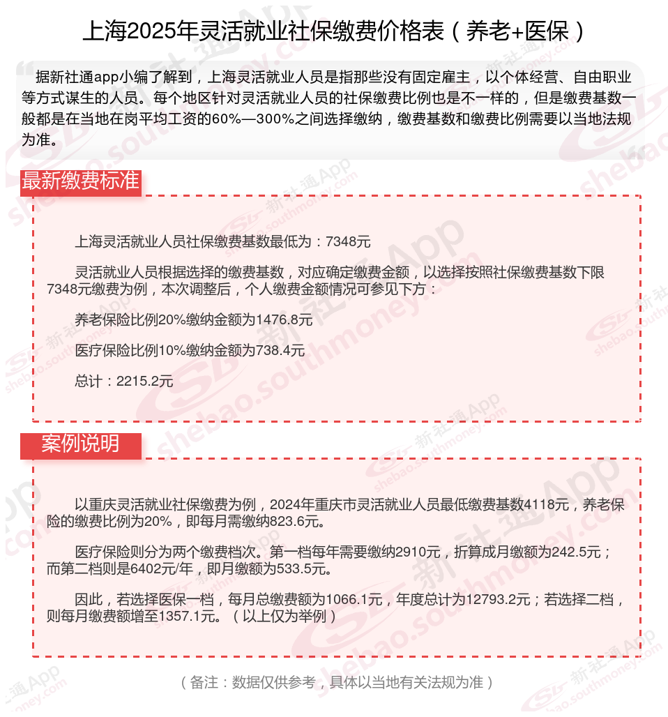 随着经济社会的不断发展,灵活就业群体日益壮大,其社保缴费问题也愈发受到关注。接下来随社保君了解一下2025年上海灵活就业人员社保交多少钱的详细内容。