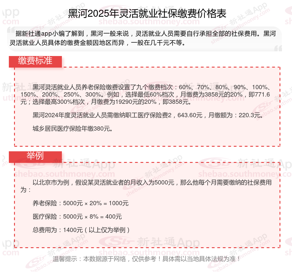 灵活就业社保是指针对灵活就业人员的社会保险制。灵活就业人员包括个体经营者、自由职业者、临时工等,他们没有固定的雇主,因此需要自行缴纳社会保险。那么2025年黑河灵活就业人员社保需要交多少钱?下面随新社通小编一起来看看。