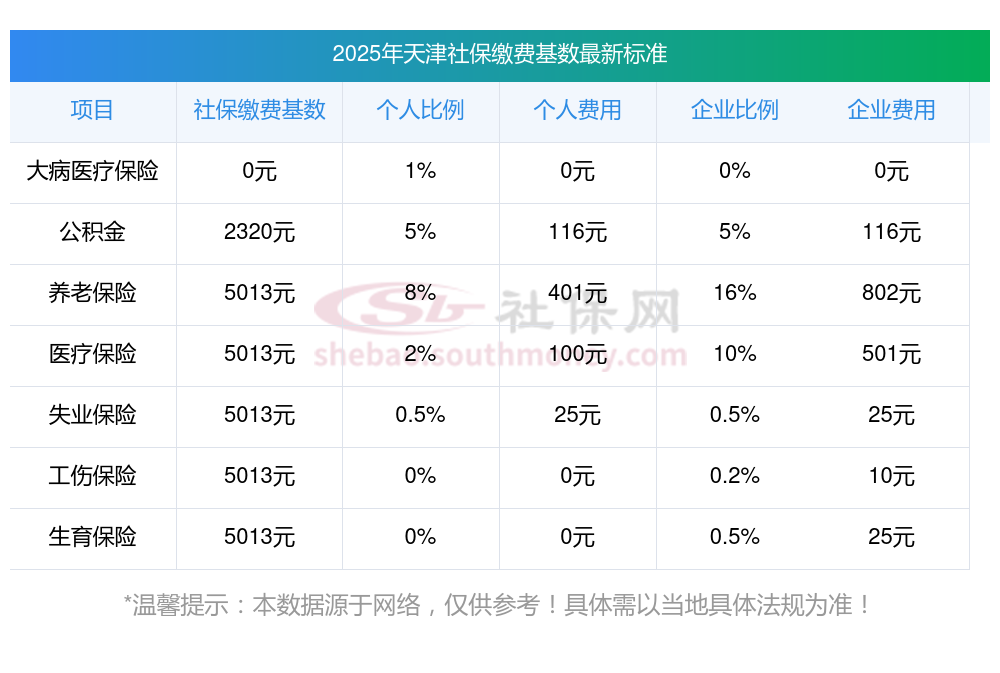 据新社通app显示,天津社保缴费基数2025年标准,(社保最低一个月要交多少钱)天津社保费用如下:
