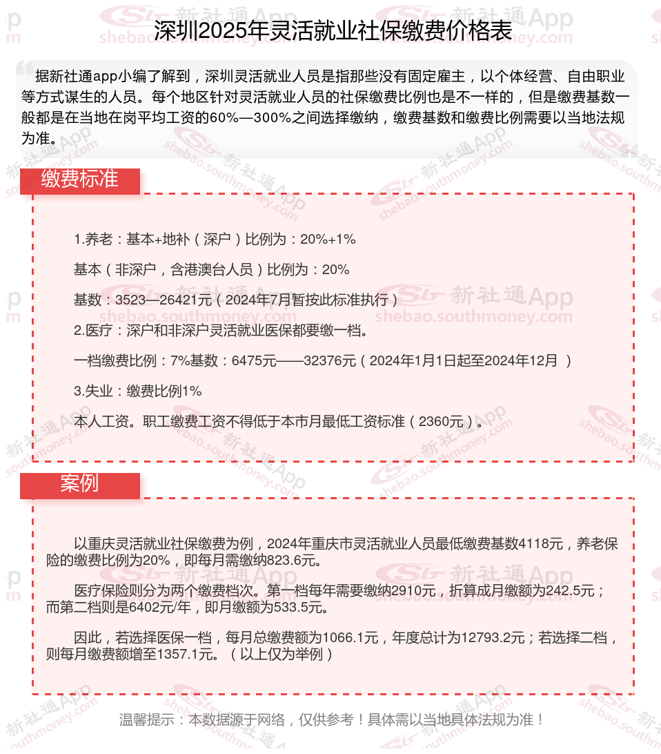 二、深圳2025年灵活就业社保缴费基数及比例最新消息