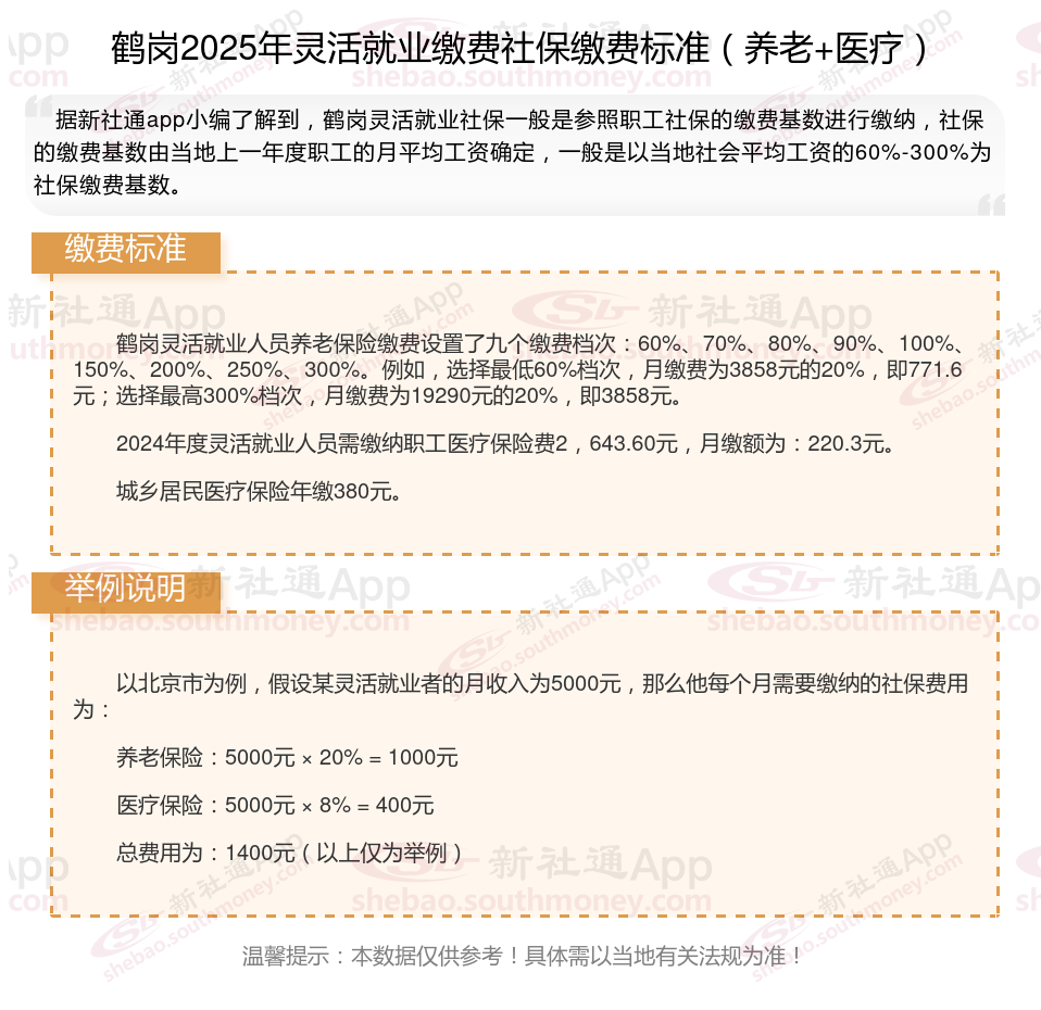 随着经济社会的不断发展,灵活就业群体不断地日益壮大,其社保缴费问题也愈发受到关注。那么2025年鹤岗灵活就业人员社保交多少钱,你了解2025年鹤岗灵活就业人员社保缴费基数及比例吗,接下来随新社通APP小编一起来看看。