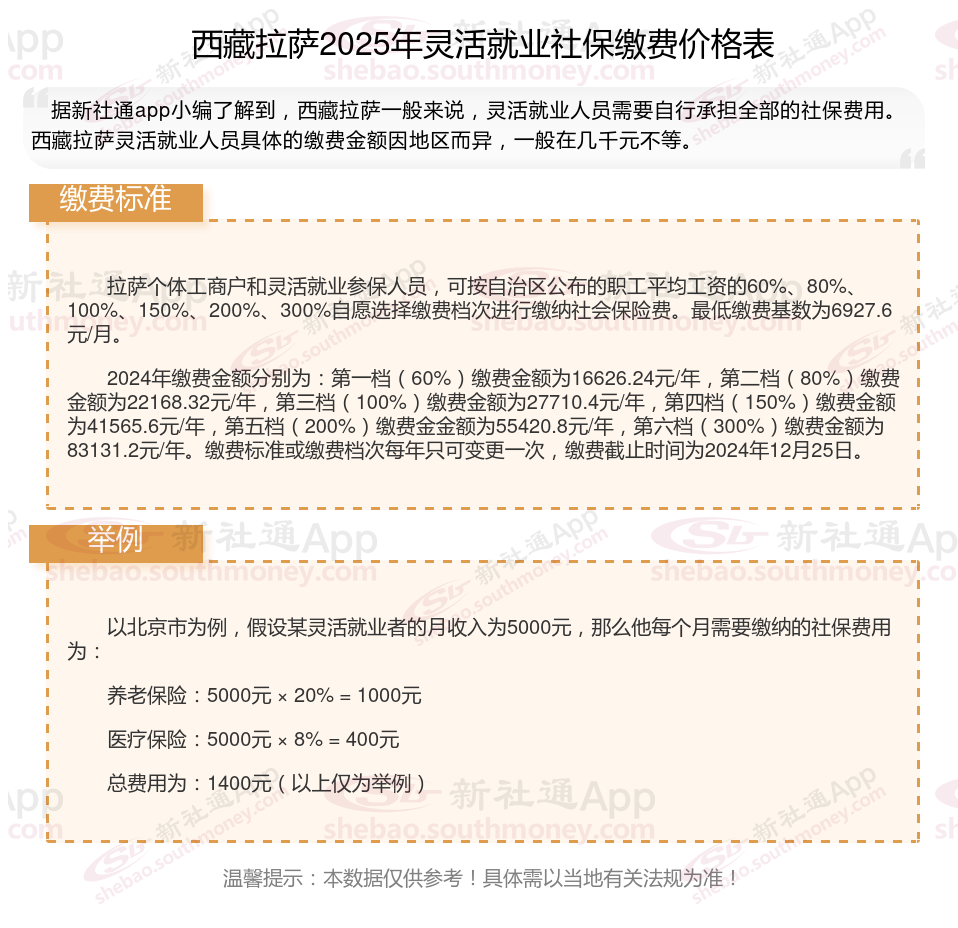 一、2024年西藏拉萨灵活就业社保缴费标准表 西藏拉萨灵活就业社保多少钱一个月?