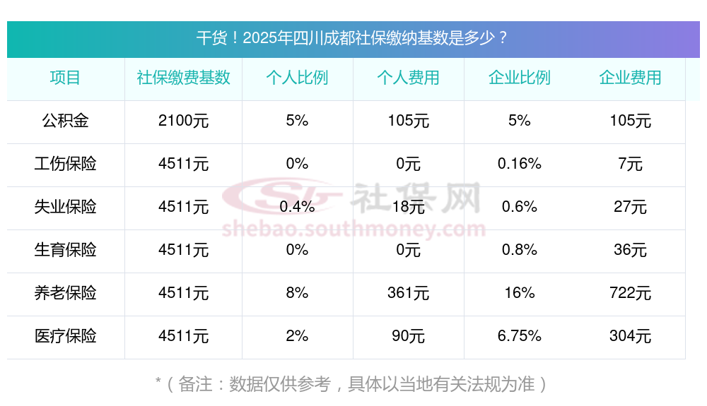 四川成都职工社保缴费多少钱?2025年四川成都职工社保缴费基数最新参考为:3579.00,具体如下: