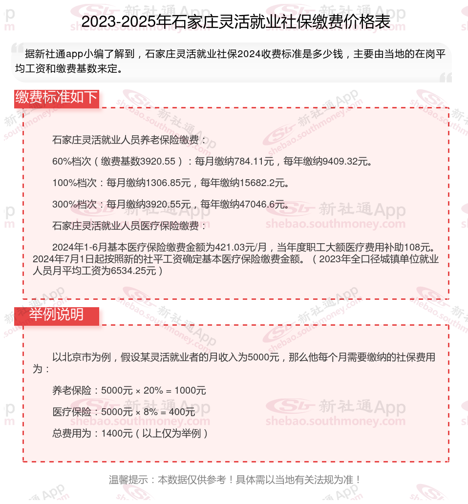 二、石家庄2024年灵活就业社保缴费基数、比例最新消息