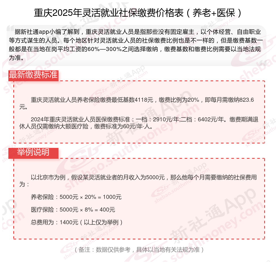 以上就是重庆灵活就业社保缴费的全部内容,数据及内容供参考!希望对你有帮助,欢迎关注新社通解锁更多社保专业资讯。