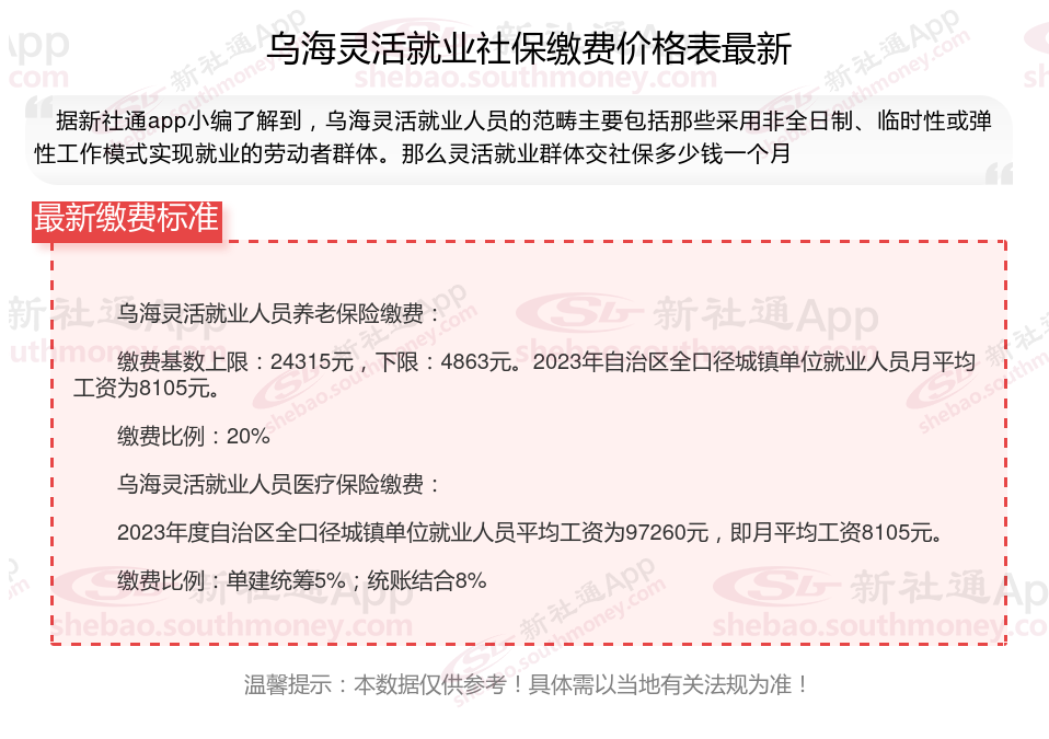 随着经济社会的不断发展,灵活就业群体日益壮大,其社保缴费问题也愈发受到关注。那么2025年乌海灵活就业人员社保需要交多少钱,缴费比例是多少?下面随新社通小编一起来看看。