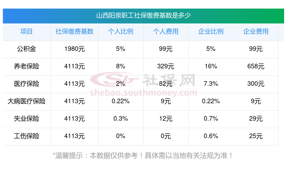 2025年山西阳泉社保费用明细表,个人要交多少钱?