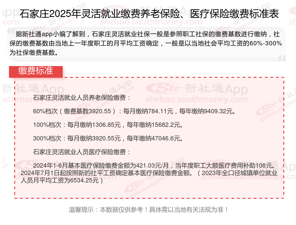 随着经济社会的不断发展,灵活就业群体日益壮大,其社保缴费问题也愈发受到关注。那么2025年石家庄灵活就业人员社保需要交多少钱,缴费比例是多少?下面随新社通小编一起来看看。