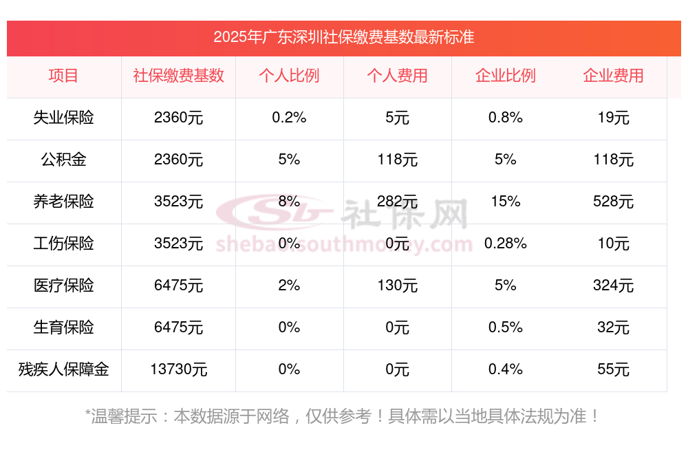 据新社通app获悉:广东深圳企业职工社保缴费基数为:3579.00元,广东深圳社保要多少钱?2025年个人社保缴费标准表(最低标准)?: