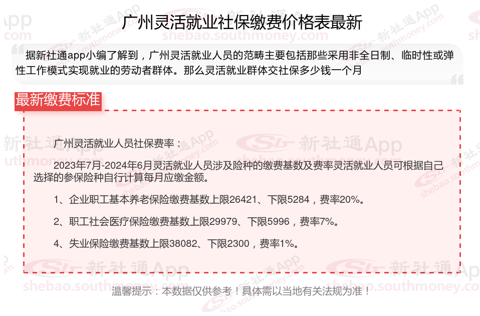 二、2024年广州灵活就业社保缴费标准,最新如下: