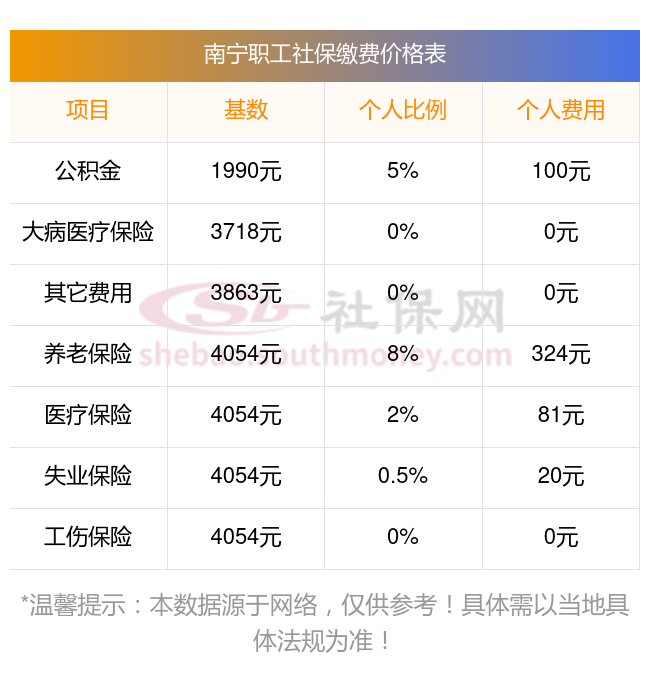 南宁个人社保交多少钱一个月?据新社通app获悉:南宁企业职工社保缴费基数为:3579.00元