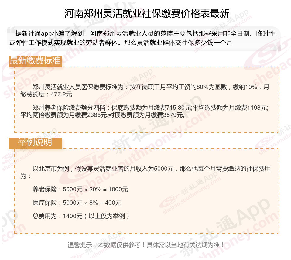 随着经济社会的不断发展,灵活就业群体日益壮大,其社保缴费问题也愈发受到关注。那么2025年河南郑州灵活就业人员社保需要交多少钱,缴费比例是多少?下面随新社通小编一起来看看。