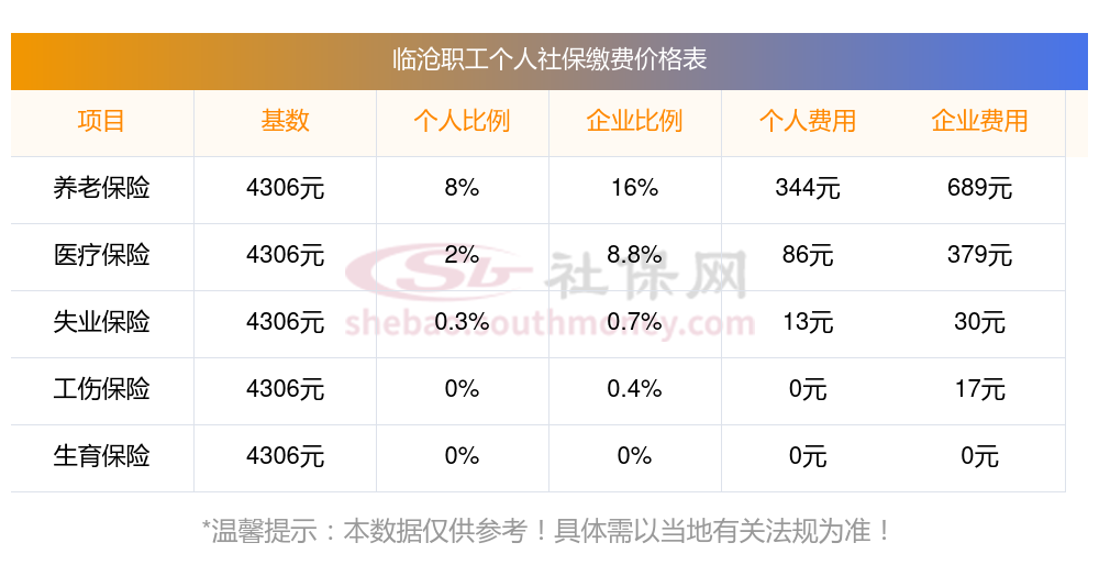 临沧职工社保缴费多少钱?临沧职工社保缴费基数最新参考为:3579.00,具体如下: