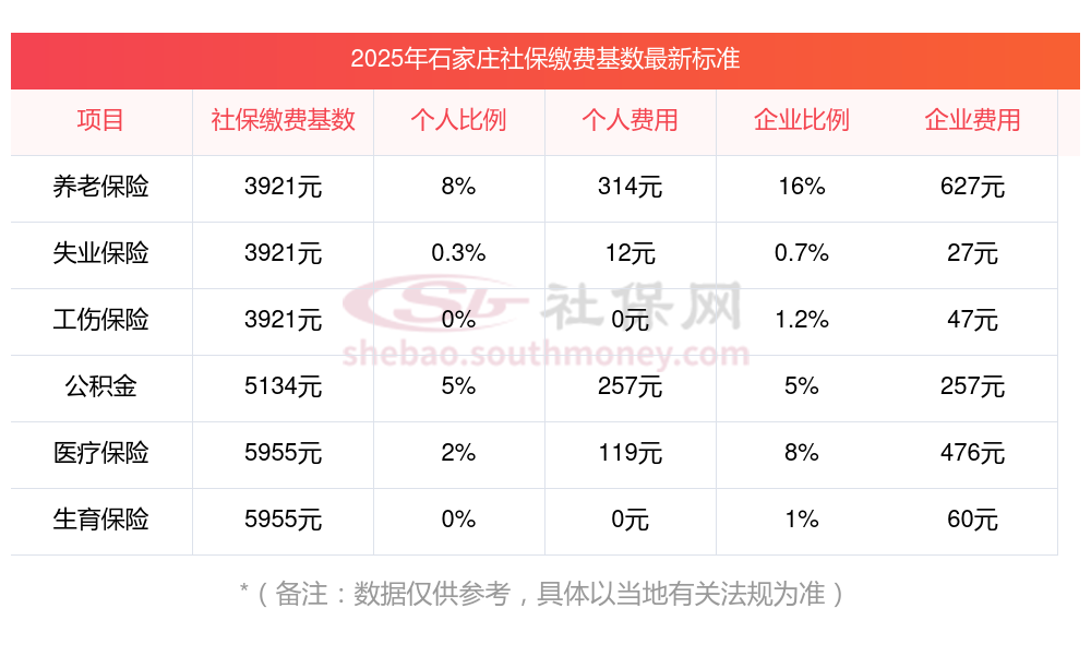 一、2025年石家庄职工社保缴费基数是多少钱一个月?职工社保缴纳标准是多少?
