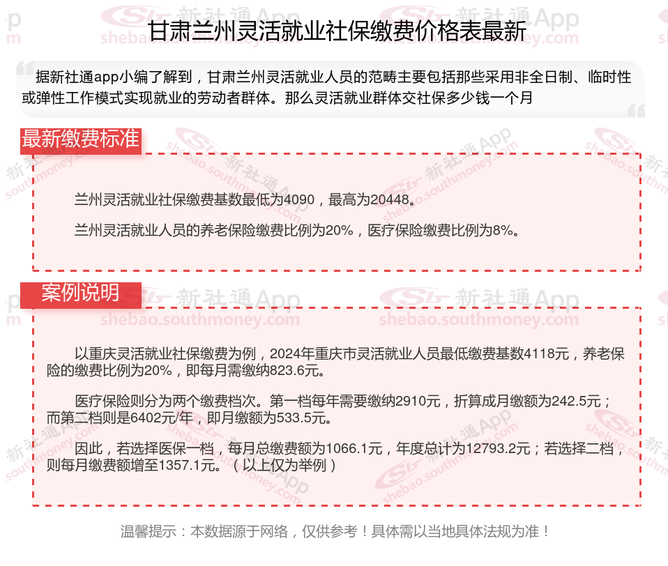 二、甘肃兰州2024年灵活就业社保缴费基数、比例最新消息