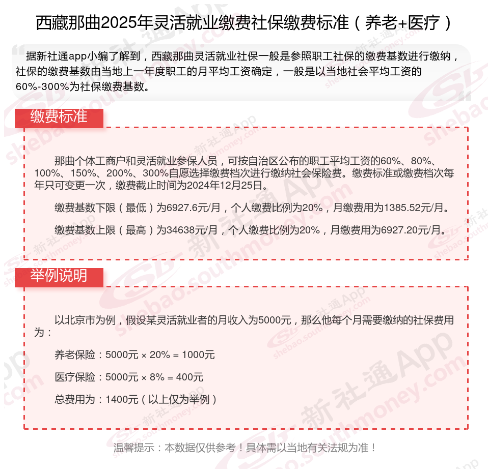 一、2024-2025年西藏那曲灵活就业社保缴费标准表 西藏那曲灵活就业社保多少钱一个月?