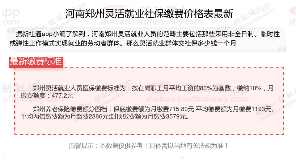 一、2024年河南郑州灵活就业社保缴费标准表 河南郑州灵活就业社保多少钱一个月?