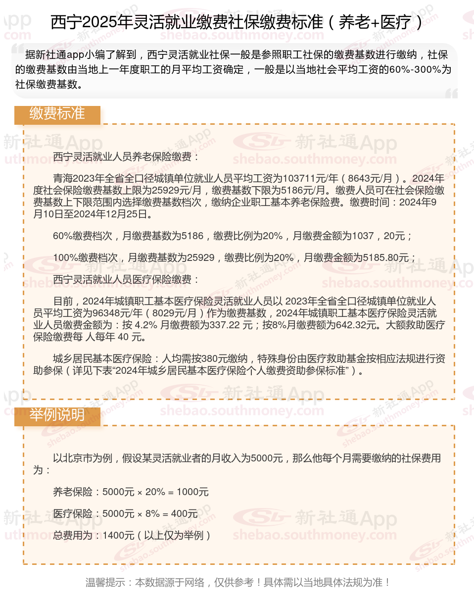 二、西宁2024年灵活就业社保缴费基数、比例最新消息