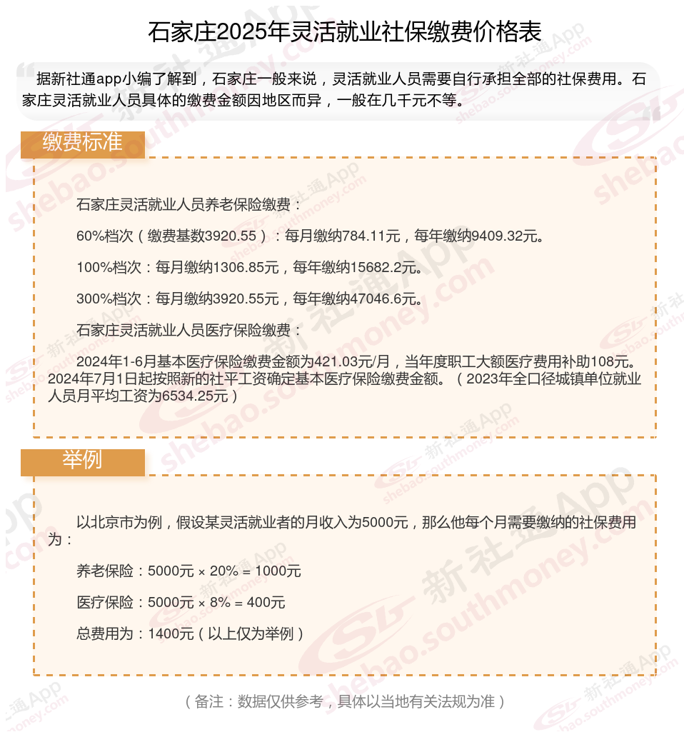 2025年石家庄灵活就业人员社保需要交多少钱?社保缴费的金额取决于多个因素,包括缴费基数和缴费比例,且各地标准存在差异。下面随新社通小编一起来看看。
