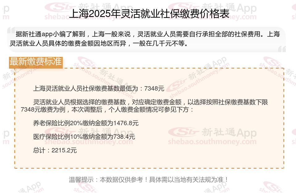 一、2025年上海灵活就业社保缴费标准表,据新社通小编了解到,上海社保公积金缴费基数为:3579.00元。