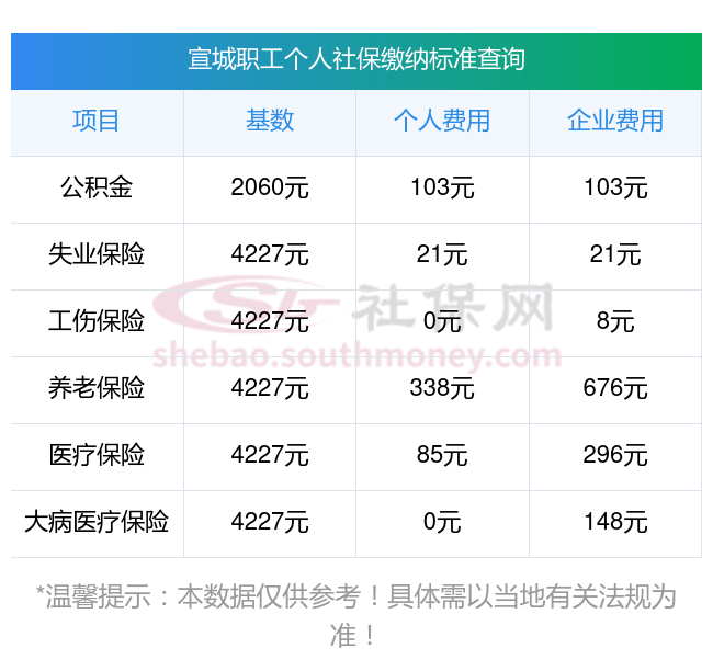 据新社通app获悉:宣城企业职工社保缴费基数为:3579.00元